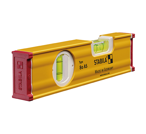 The type 80 AS-2 reinforced aluminium rectangular profile, together with STABILA installation technology, ensures accuracy and a long service life. The vials and the measuring surfaces align perfectly with one another during the production process and are permanently connected, guaranteeing the very best in measuring accuracy over many years. This is a spirit level that delivers what it promises.